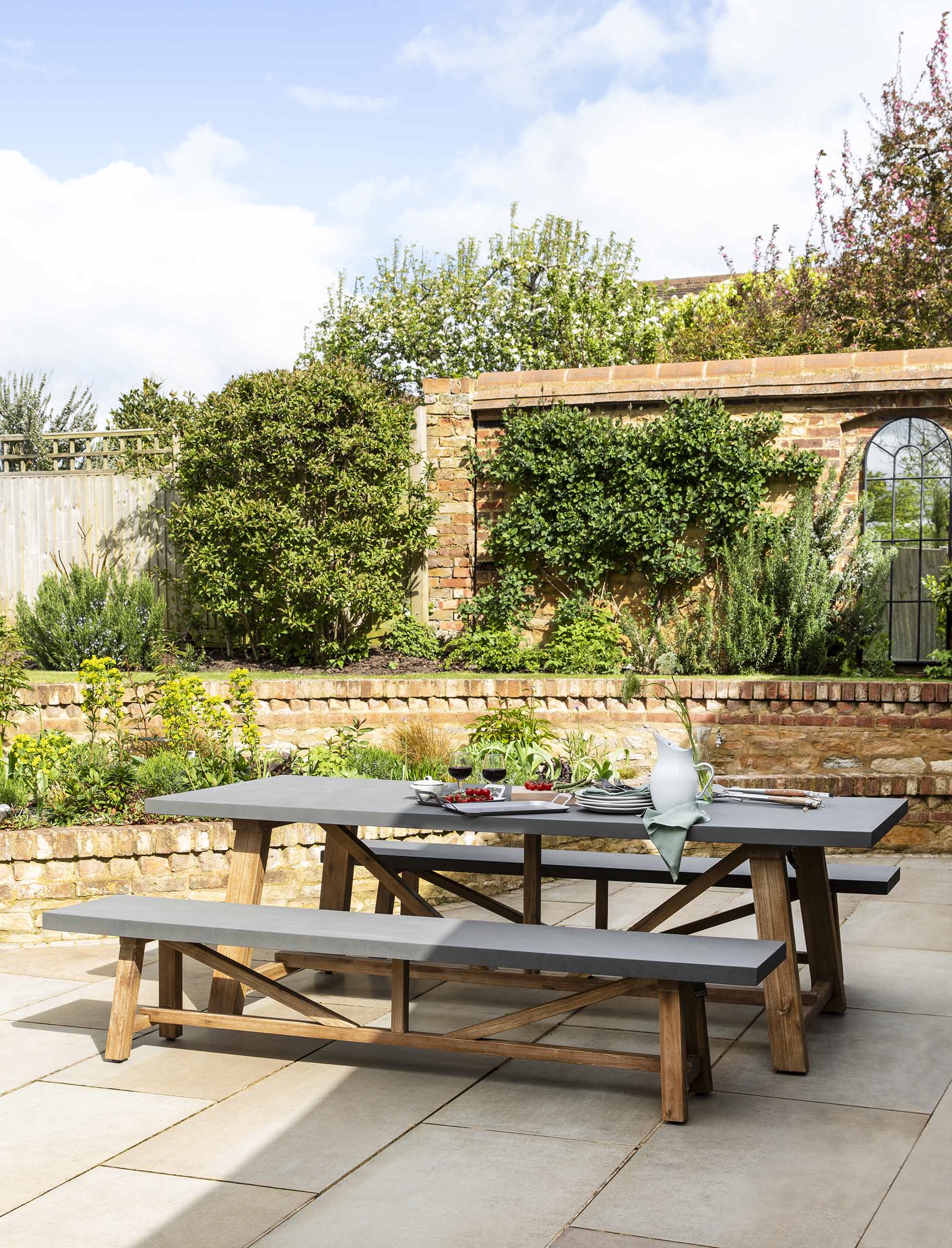 Elevate your entertaining with the Chilford Table & Bench Set, a substantial three-piece collection designed for generous gatherings. Featuring a spacious trestle-inspired table paired with two generous benches, this set can be used inside or outside with understated elegance.